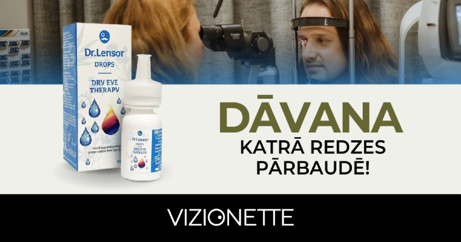 Visu augustu un septembri VIZIONETTE optikas salonos ikvienā redzes pārbaudē saņem kā dāvanu Dr.Lensor DROPS acu pilienus — rūpīgi izstrādātu acu mitrināšanas un aizsardzības līdzekli, kas radīts, lai nodrošinātu acīm maksimālu komfortu.